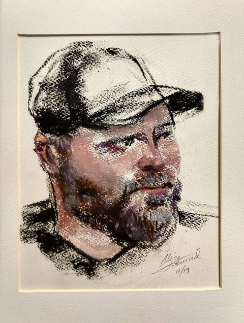 Together with 2 - 3 artist pals, we've offered an opportunity for these vets to sit for and to keep a mat-framed portrait of themselves. These are very brief encounters (~ 45 mins.), for each portrait sitting.